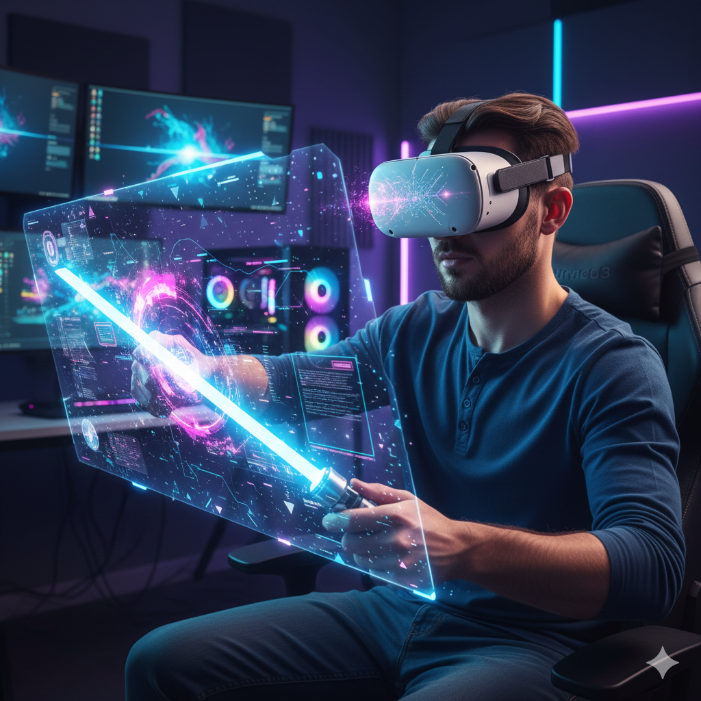 - Mixed Reality (MR): ఇది కేవలం వర్చువల్ ప్రపంచమే కాదు, మీ గదిలోనే డిజిటల్ వస్తువులను చూసేలా చేస్తుంది. అంటే మీ గది గోడలపై నుండి జంబీలు వస్తున్నట్లు మీరు చూడొచ్చు!